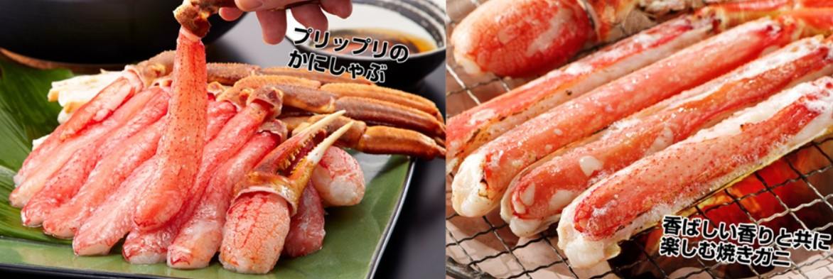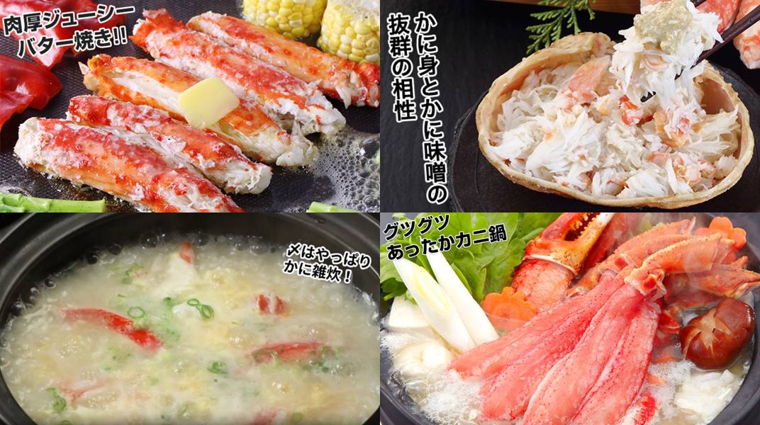 刺身用、かにしゃぶ、ボイル、かに鍋、焼きがに、バター焼き、かに雑炊…